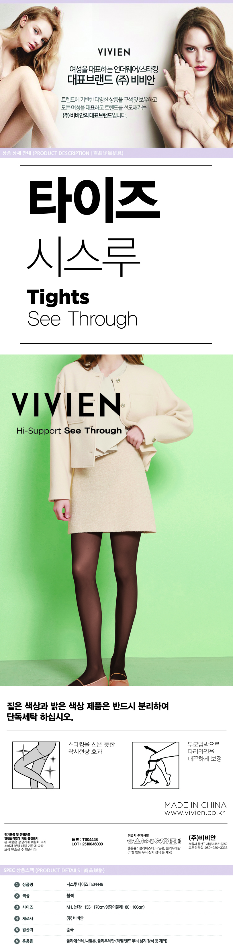 비비안 시스루 타이즈 3매입 69,000 ▶ 49,500원