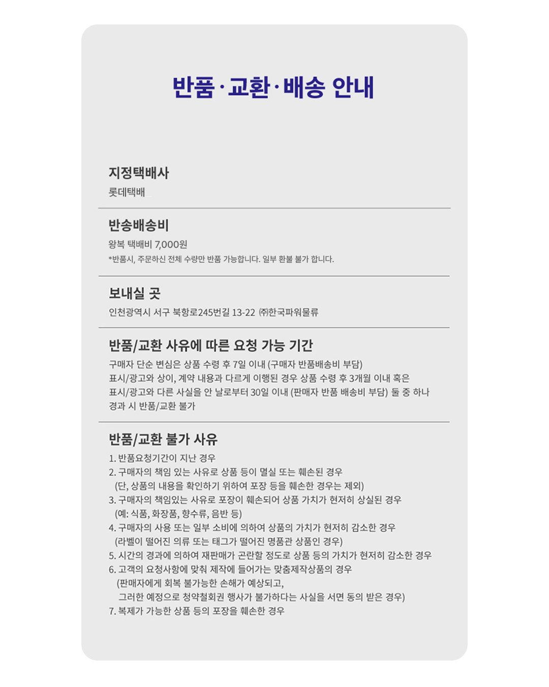 | 교환/반품 안내 |